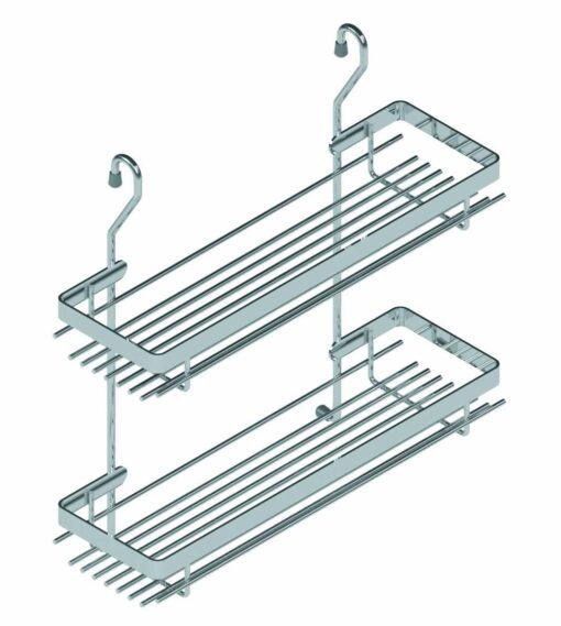 Mutfak askı borularında kullanılabilen krom renkte, klasik ikili küçük raflı baharatlık